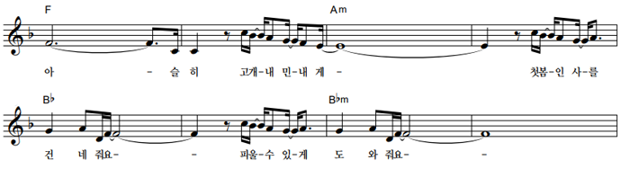 기타 연주 역시 아주 쉽다. 도입부를 보면 F-G-Am-Bb-C로 진행되는데 후렴구에서도 약간의 변화만 있을 뿐 대동소이하다고 보면 된다. 단, 도입부는 바레 코드, 후렴구는 오픈 코드로 연주해야 한다.