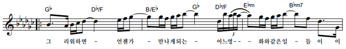 [편집자 주] 원곡은 Gb키이며, G키 기준으로 표기하면 G - D/F# - C/E - G - Em - Bm7 - C - D와 같이 진행된다